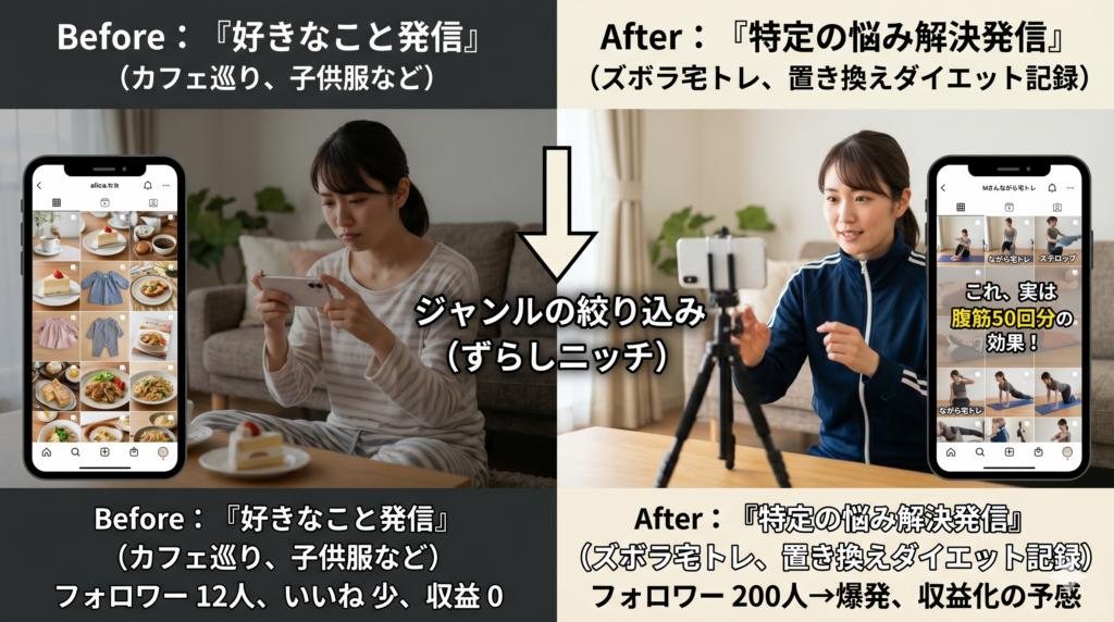 - 素直に「ジャンルを絞った」こと:自分の好きなこと(カフェ巡り)への執着を捨て、ターゲットが明確な「ずらしニッチ」に素早く移行した決断力です。